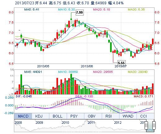| 最 高: | 6.75 | 成交額: | 4304.20萬元 | 換手率: | 2.36% |