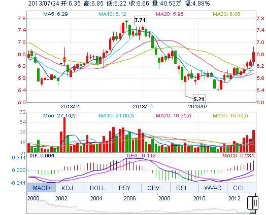 | 最 高: | 6.85 | 成交額: | 2.65億元 | 換手率: | 4.55% |