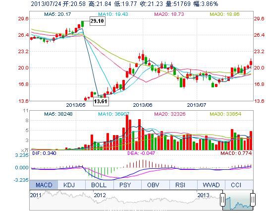 | 今 開: | 20.58 | 成交量: | 5.18萬手 | 振 幅: | 10.13% |