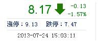 今開: 8.20 成交量: 23.02萬(wan) 手 振幅: 3.86% 最高: 8.30 成交額: 1.88億(yi) 元 換手率: 5.27% 最低: 7.98 總市值: 35.69億(yi) 市淨率: 2.55 昨收: 8.30 流通市值: 35...