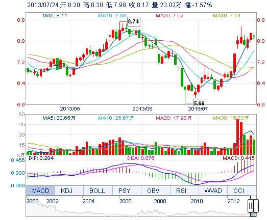| 最 高: | 8.30 | 成交額: | 1.88億元 | 換手率: | 5.27% |