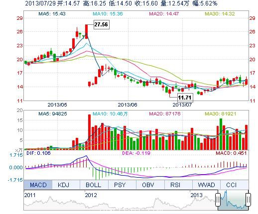 | 今 開: | 14.57 | 成交量: | 12.54萬手 | 振 幅: | 11.85% |