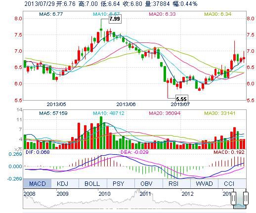 | 今 開: | 6.76 | 成交量: | 3.79萬手 | 振 幅: | 5.32% |