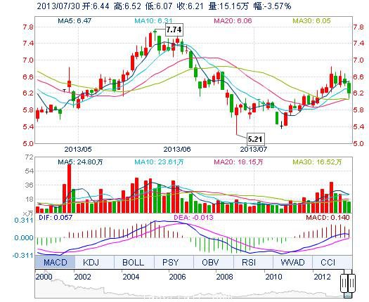 | 今 開: | 6.44 | 成交量: | 15.15萬手 | 振 幅: | 6.99% |