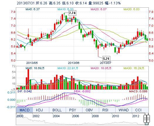 | 今 開: | 6.26 | 成交量: | 9.98萬手 | 振 幅: | 4.03% |