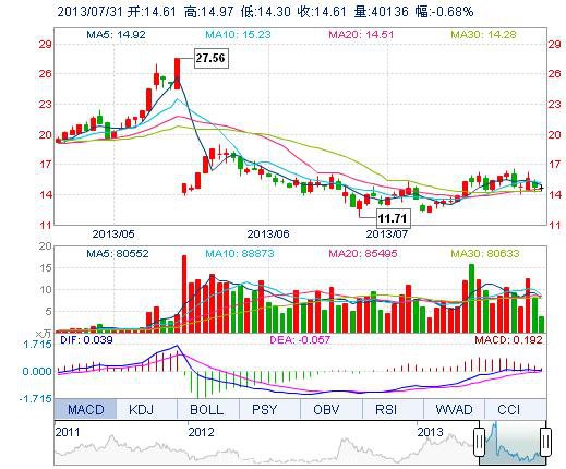 | 今 開: | 14.61 | 成交量: | 4.01萬手 | 振 幅: | 4.55% |