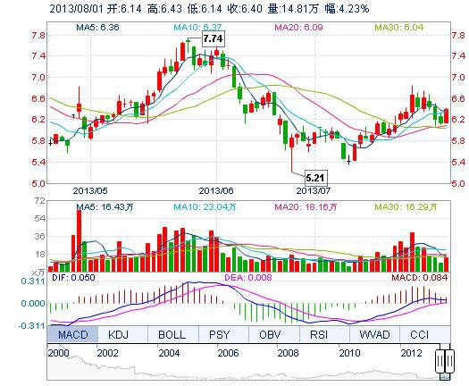 今開: 6.14 成交量: 14.81萬(wan) 手 振幅: 4.72% 最高: 6.43 成交額: 9363.47萬(wan) 元 換手率: 1.66% 最低: 6.14 總市值: 57.03億(yi) 市淨率: 2.17 昨收: 6.14 流通市值:...