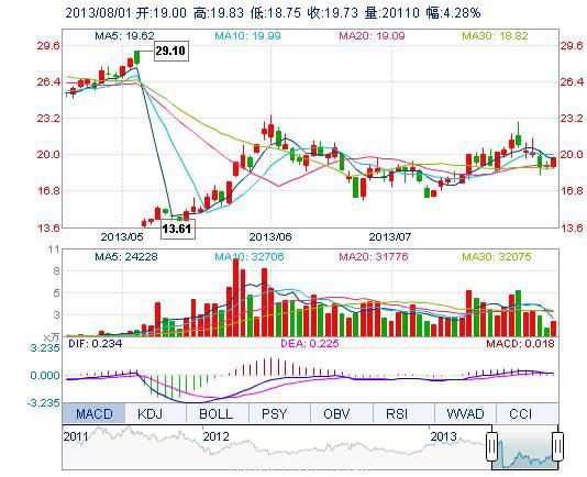 | 今 開: | 19.00 | 成交量: | 2.01萬手 | 振 幅: | 5.71% |
