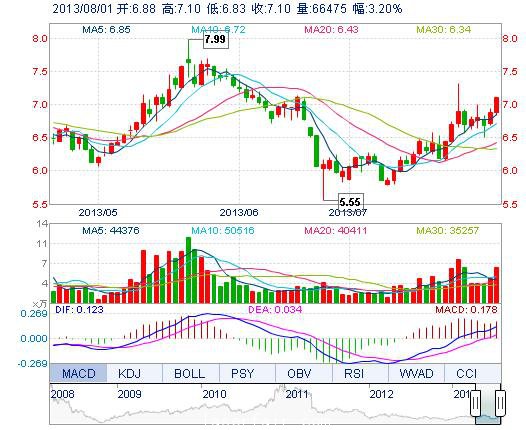 | 最 高: | 7.10 | 成交額: | 4683.34萬元 | 換手率: | 2.42% |
