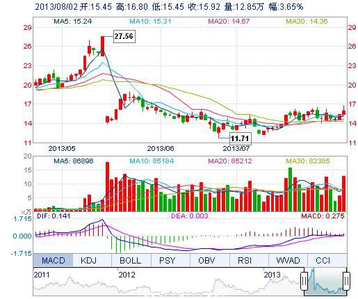 今開: 15.45 成交量: 12.85萬(wan) 手 振幅: 8.79% 最高: 16.80 成交額: 2.08億(yi) 元 換手率: 18.96% 最低: 15.45 總市值: 21.33億(yi) 市淨率: 3.33 昨收: 15.36 流通市值...
