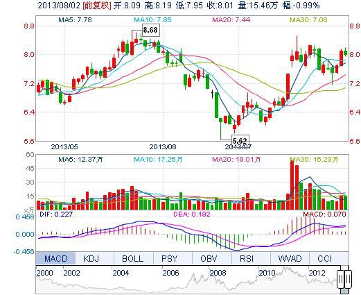 | 今 開: | 8.09 | 成交量: | 15.46萬手 | 振 幅: | 2.97% |