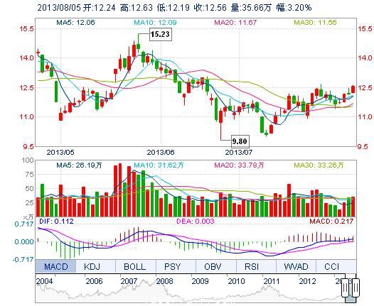 | 最 高: | 12.63 | 成交額: | 4.44億元 | 換手率: | 3.77% |