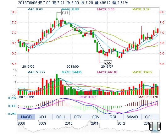今開: 7.00 成交量: 4.99萬(wan) 手 振幅: 3.14% 最高: 7.21 成交額: 3566.62萬(wan) 元 換手率: 1.82% 最低: 6.99 總市值: 20.52億(yi) 市淨率: 3.26 昨收: 7.01 流通市值: ...