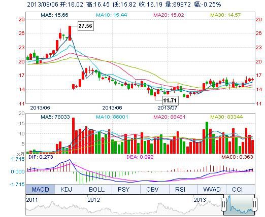 | 最 高: | 16.45 | 成交額: | 1.13億元 | 換手率: | 10.20% |