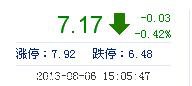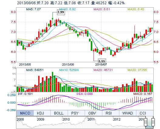| 今 開: | 7.20 | 成交量: | 4.63萬手 | 振 幅: | 2.22% |