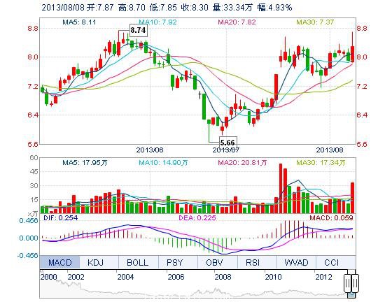 | 最 高: | 8.70 | 成交額: | 2.81億元 | 換手率: | 7.63% |