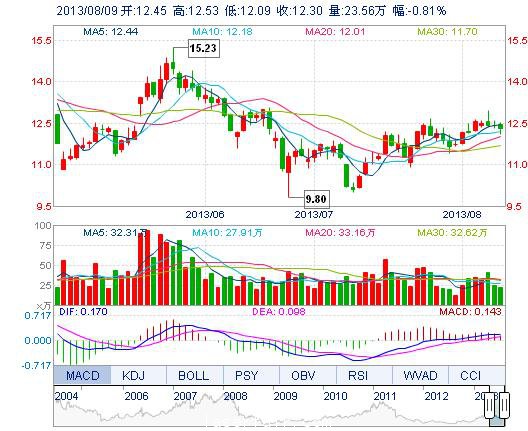 | 今 開: | 12.45 | 成交量: | 23.56萬手 | 振 幅: | 3.55% |