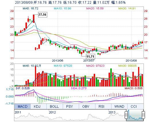 今開: 16.76 成交量: 11.02萬(wan) 手 振幅: 6.26% 最高: 17.76 成交額: 1.90億(yi) 元 換手率: 16.08% 最低: 16.70 總市值: 23.07億(yi) 市淨率: 7.22 昨收: 16.94 流通市值...