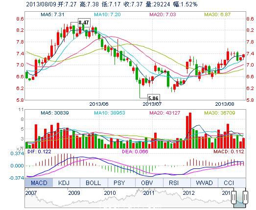 | 今 開: | 7.27 | 成交量: | 2.92萬手 | 振 幅: | 2.89% |