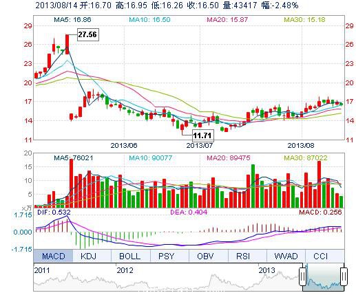 | 今 開: | 16.70 | 成交量: | 4.34萬手 | 振 幅: | 4.08% |