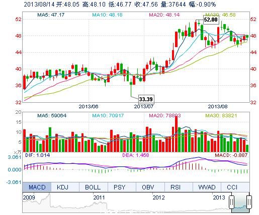 | 最 高: | 48.10 | 成交額: | 1.78億元 | 換手率: | 1.31% |