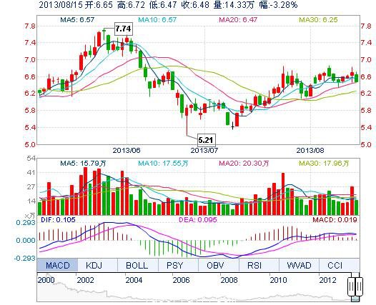 今開: 6.65 成交量: 14.33萬(wan) 手 振幅: 3.73% 最高: 6.72 成交額: 9456.59萬(wan) 元 換手率: 1.61% 最低: 6.47 總市值: 57.74億(yi) 市淨率: 2.20 昨收: 6.70 流通市值:...