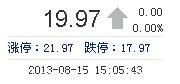 | 最 高: | 20.25 | 成交額: | 2728.37萬元 | 換手率: | 6.37% |