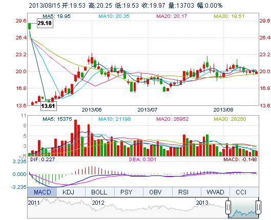 | 今 開: | 19.53 | 成交量: | 1.37萬手 | 振 幅: | 3.61% |