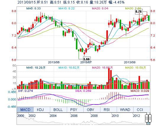 | 最 高: | 8.51 | 成交額: | 1.52億元 | 換手率: | 4.18% |