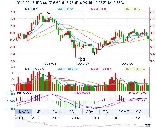 | 今 開: | 6.44 | 成交量: | 13.86萬手 | 振 幅: | 4.94% |