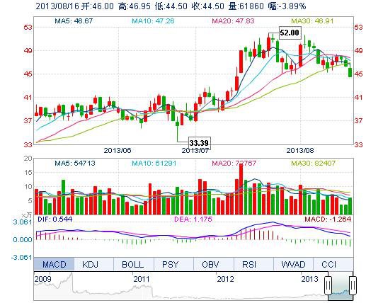 | 最 高: | 46.95 | 成交額: | 2.81億元 | 換手率: | 2.15% |