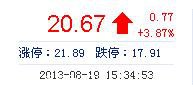 | 最 高: | 20.67 | 成交額: | 4193.64萬元 | 換手率: | 9.61% |