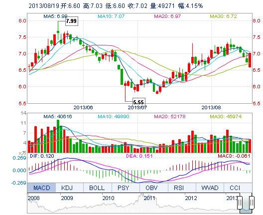 今開: 6.60 成交量: 4.93萬(wan) 手 振幅: 6.38% 最高: 7.03 成交額: 3392.51萬(wan) 元 換手率: 1.79% 最低: 6.60 總市值: 20.01億(yi) 市淨率: 3.18 昨收: 6.74 流通市值: ...