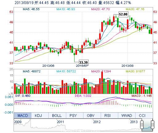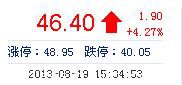 | 最 高: | 46.48 | 成交額: | 2.08億元 | 換手率: | 1.59% |