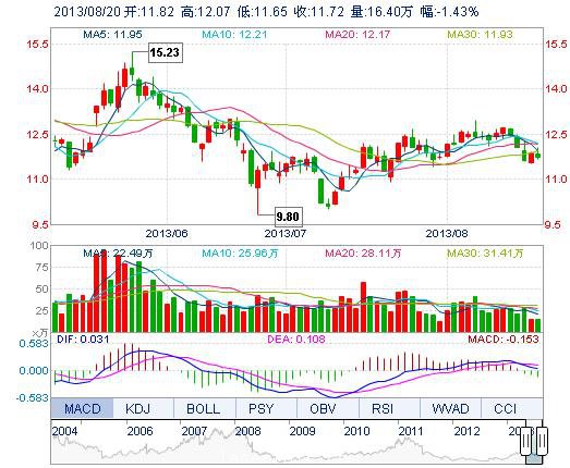 今開: 11.82 成交量: 16.40萬(wan) 手 振幅: 3.53% 最高: 12.07 成交額: 1.94億(yi) 元 換手率: 1.74% 最低: 11.65 總市值: 122.40億(yi) 市淨率: 3.53 昨收: 11.89 流通市值...