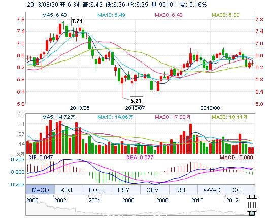 | 今 開: | 6.34 | 成交量: | 9.01萬手 | 振 幅: | 2.52% |
