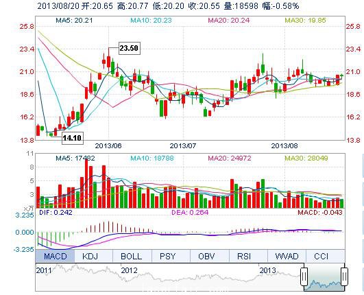 | 今 開: | 20.65 | 成交量: | 1.86萬手 | 振 幅: | 2.76% |
