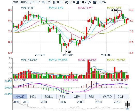 今開: 8.07 成交量: 10.93萬(wan) 手 振幅: 2.84% 最高: 8.26 成交額: 8913.27萬(wan) 元 換手率: 2.50% 最低: 8.03 總市值: 35.64億(yi) 市淨率: 2.55 昨收: 8.09 流通市值:...