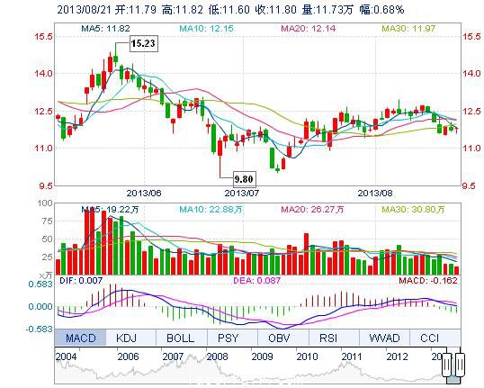 今開: 11.79 成交量: 11.73萬(wan) 手 振幅: 1.88% 最高: 11.82 成交額: 1.37億(yi) 元 換手率: 1.24% 最低: 11.60 總市值: 123.24億(yi) 市淨率: 3.56 昨收: 11.72 流通市值...