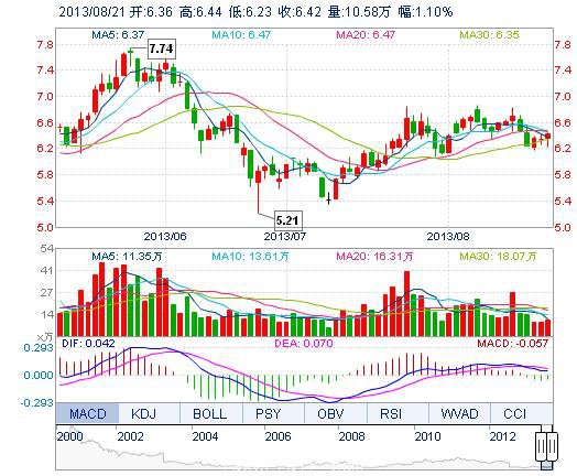 | 今 開: | 6.36 | 成交量: | 10.58萬手 | 振 幅: | 3.31% |