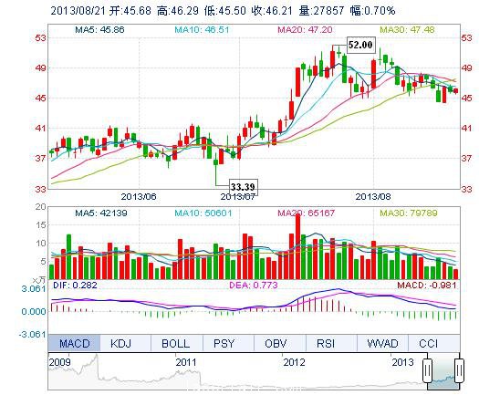 | 今 開: | 45.68 | 成交量: | 2.79萬手 | 振 幅: | 1.72% |