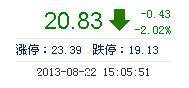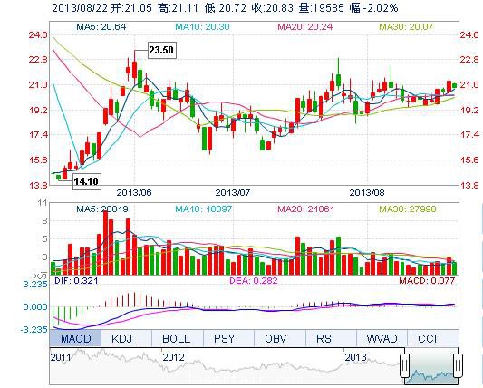 | 今 開: | 21.05 | 成交量: | 1.96萬手 | 振 幅: | 1.83% |
