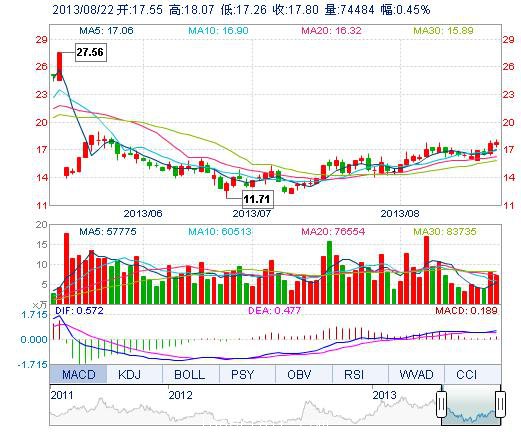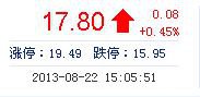 | 今 開: | 17.55 | 成交量: | 7.45萬手 | 振 幅: | 4.57% |