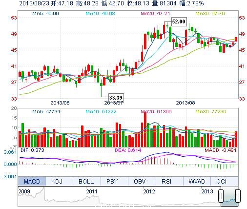 | 最 高: | 48.28 | 成交額: | 3.87億元 | 換手率: | 2.83% |