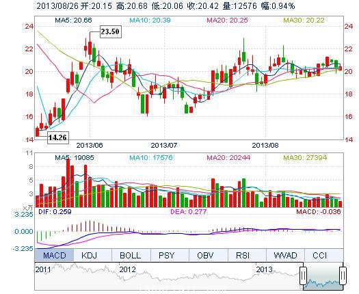 今開: 20.15 成交量: 1.26萬(wan) 手 振幅: 3.06% 最高: 20.68 成交額: 2560.04萬(wan) 元 換手率: 5.81% 最低: 20.06 總市值: 14.29億(yi) 市淨率: 4.94 昨收: 20.23 流通市...