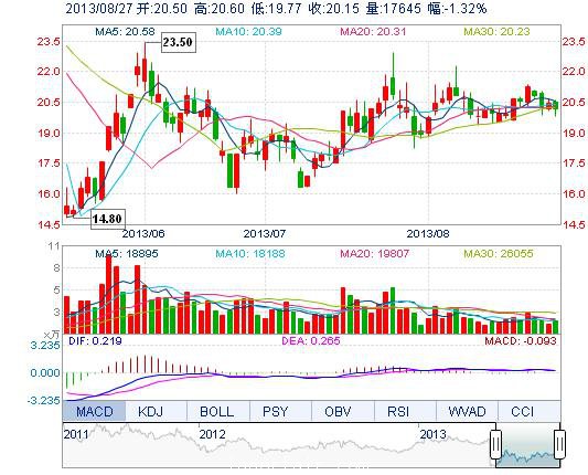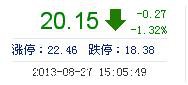 | 今 開: | 20.50 | 成交量: | 1.76萬手 | 振 幅: | 4.06% |