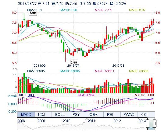 | 今 開: | 7.51 | 成交量: | 5.76萬手 | 振 幅: | 3.29% |