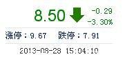 今開: 8.65 成交量: 21.85萬(wan) 手 振幅: 2.96% 最高: 8.71 成交額: 1.87億(yi) 元 換手率: 5.00% 最低: 8.45 總市值: 37.13億(yi) 市淨率: 2.64 昨收: 8.79 流通市值: 37...