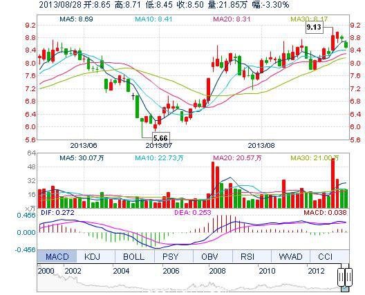 | 今 開: | 8.65 | 成交量: | 21.85萬手 | 振 幅: | 2.96% |