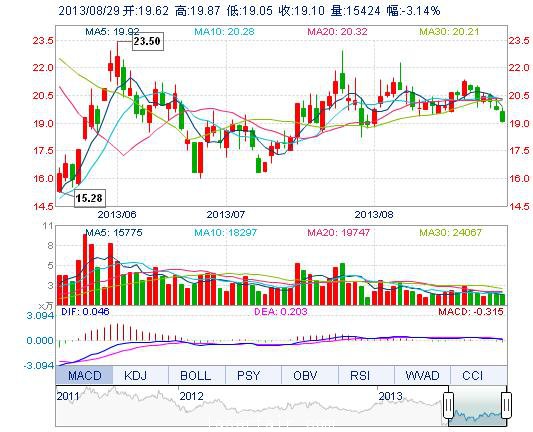 | 今 開: | 19.62 | 成交量: | 1.54萬手 | 振 幅: | 4.16% |